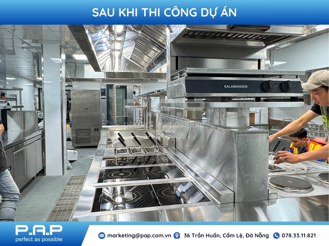 Dự án không chỉ thay đổi thiết bị mà còn thiết lập lại toàn bộ hệ thống bếp theo chuẩn vận hành mới, phù hợp với công suất, menu và mô hình dịch vụ hiện tại của resort.